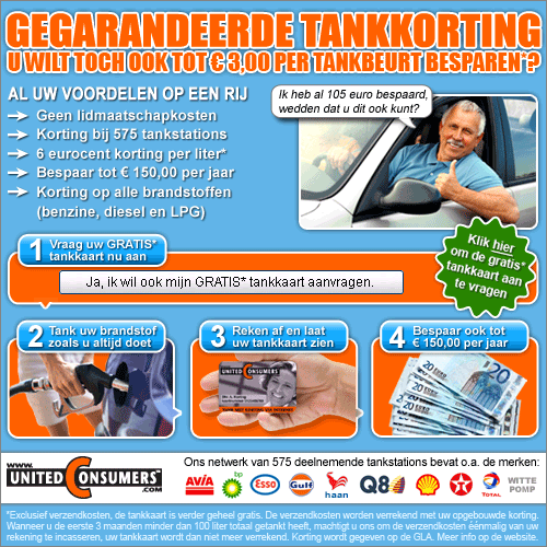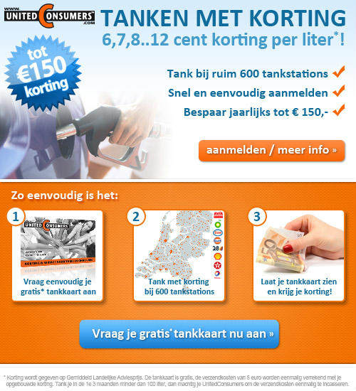 Bespaar altijd op je brandstofkosten, vraag nu de gratis Tankkaart aan van United Consumers.